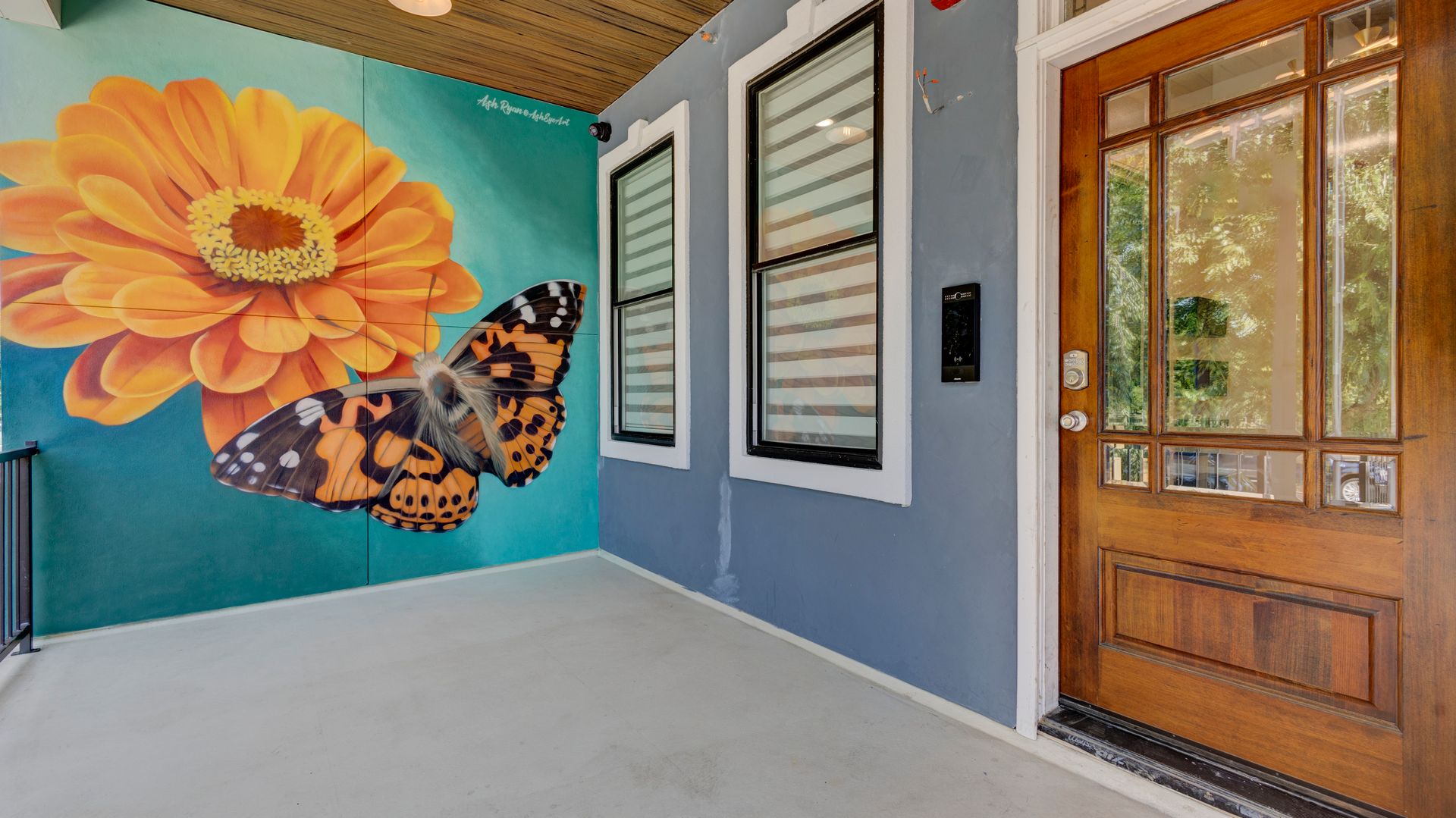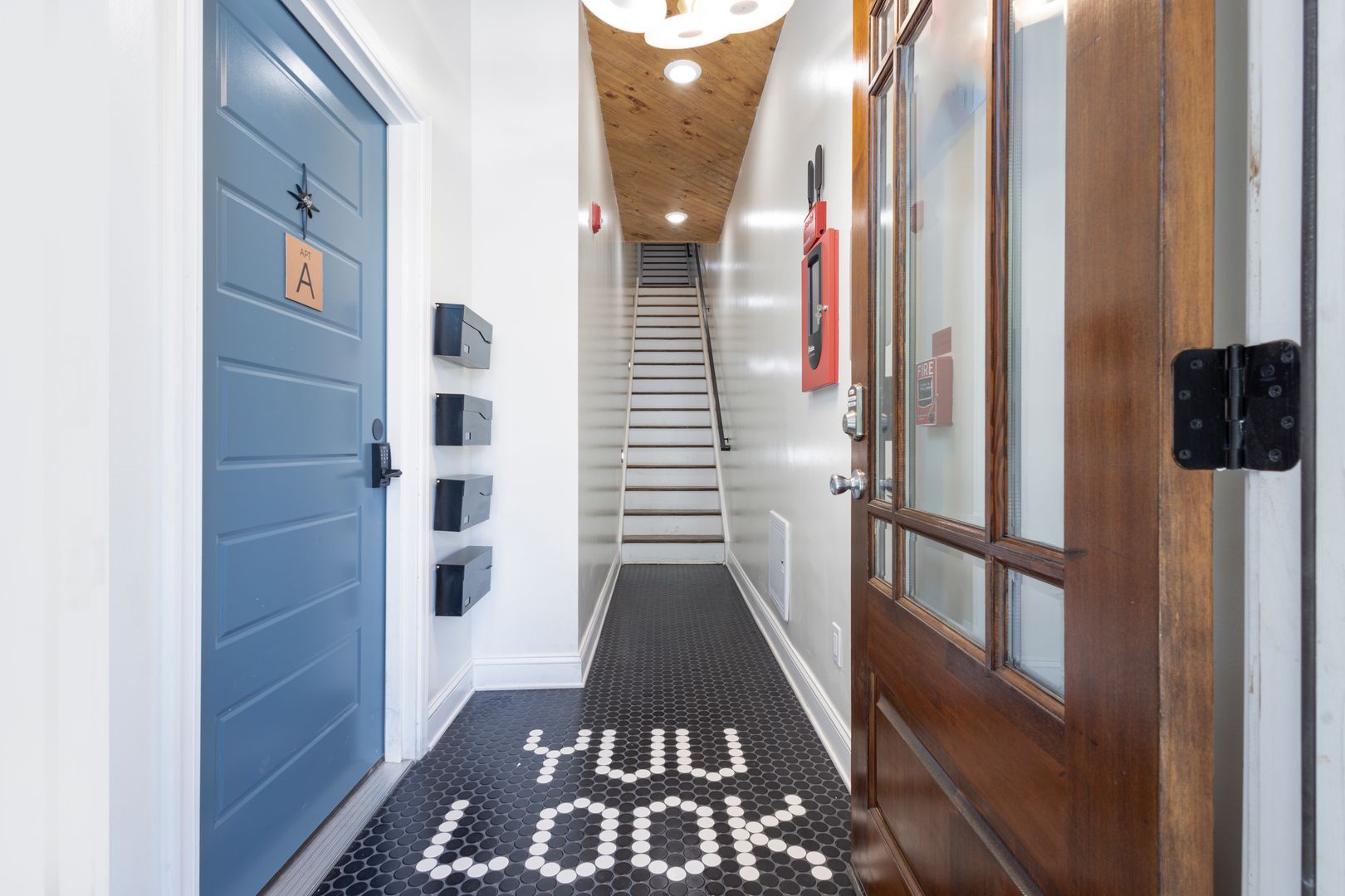 -Beautiful hallway decorated with stylish artwork to create a warm, welcoming atmosphere