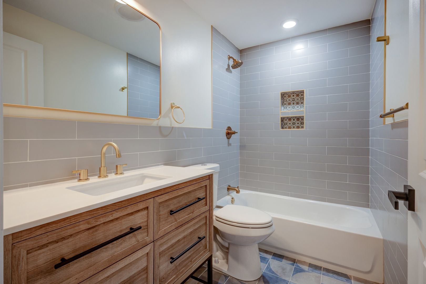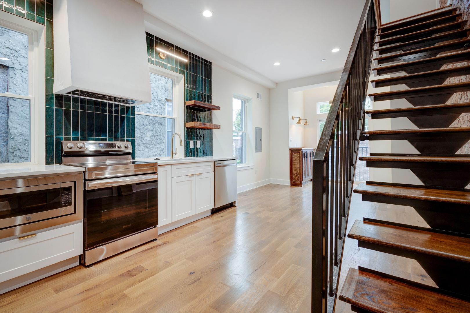 - Modern kitchen with quartz countertops & stainless steel appliances