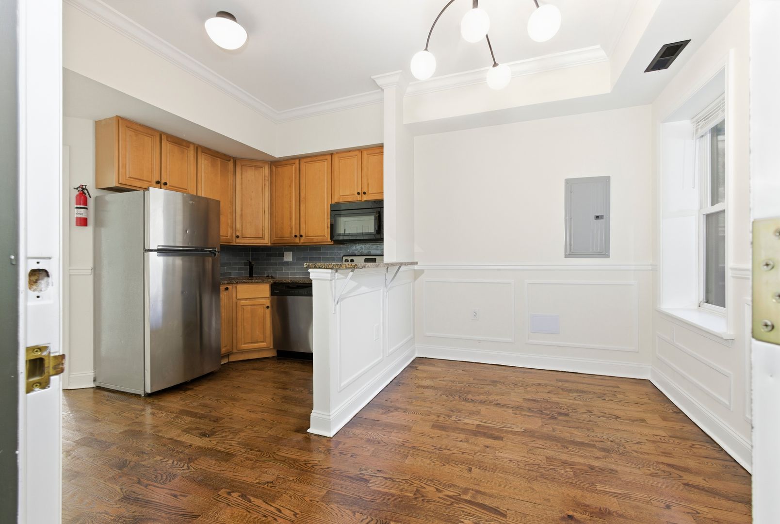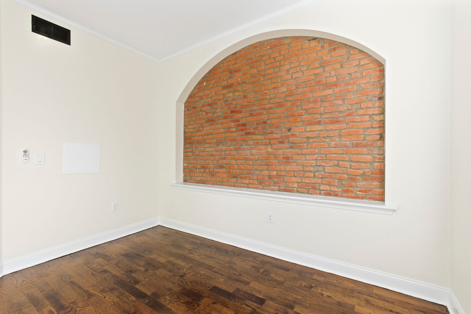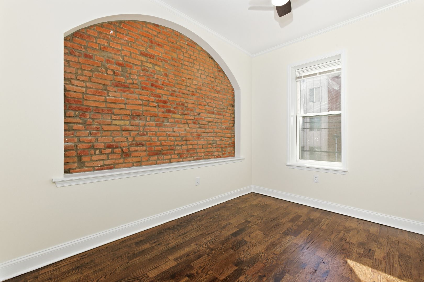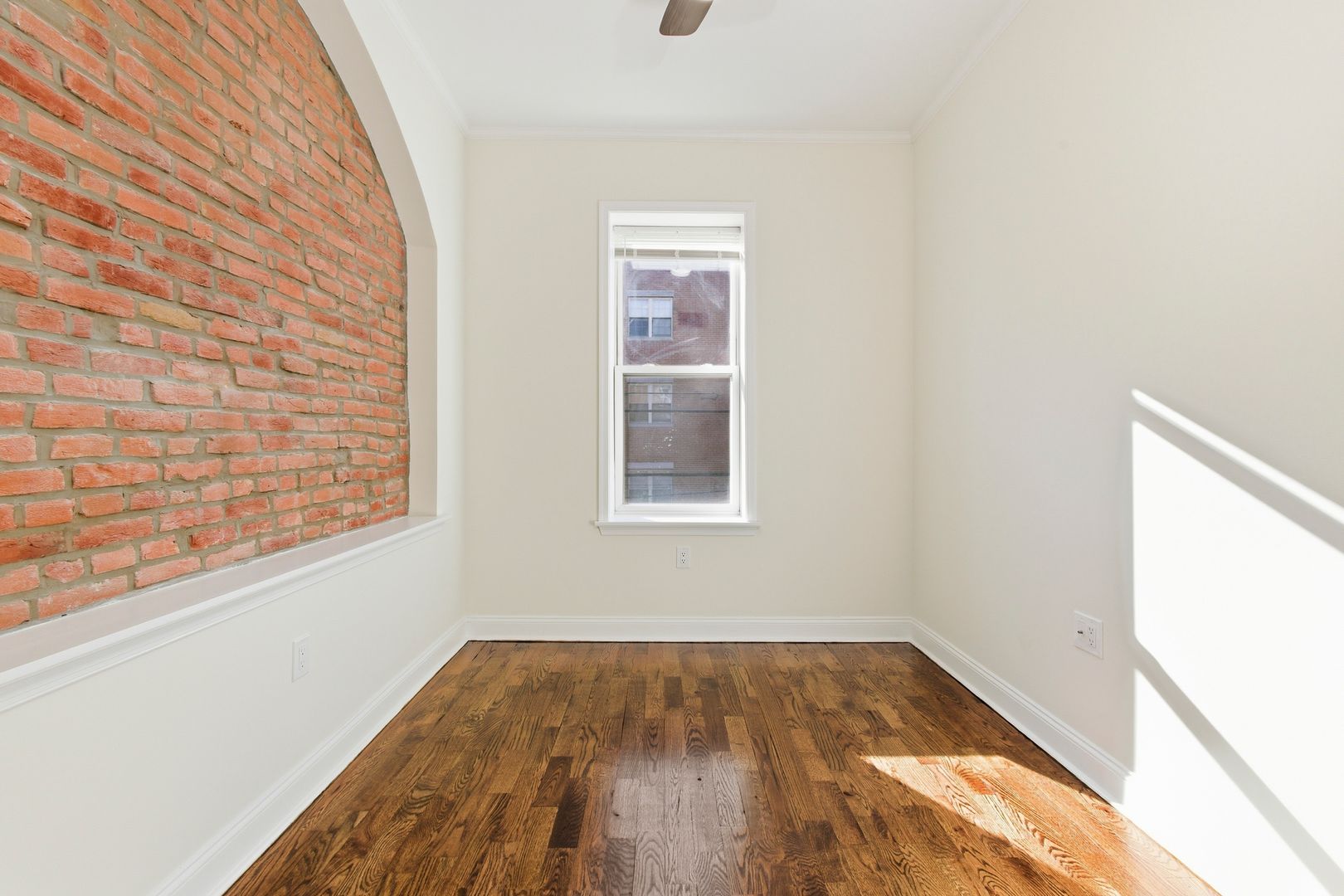 This charming 2-bedroom, 1-bath apartment features beautiful exposed brick and elegant crown molding throughout.