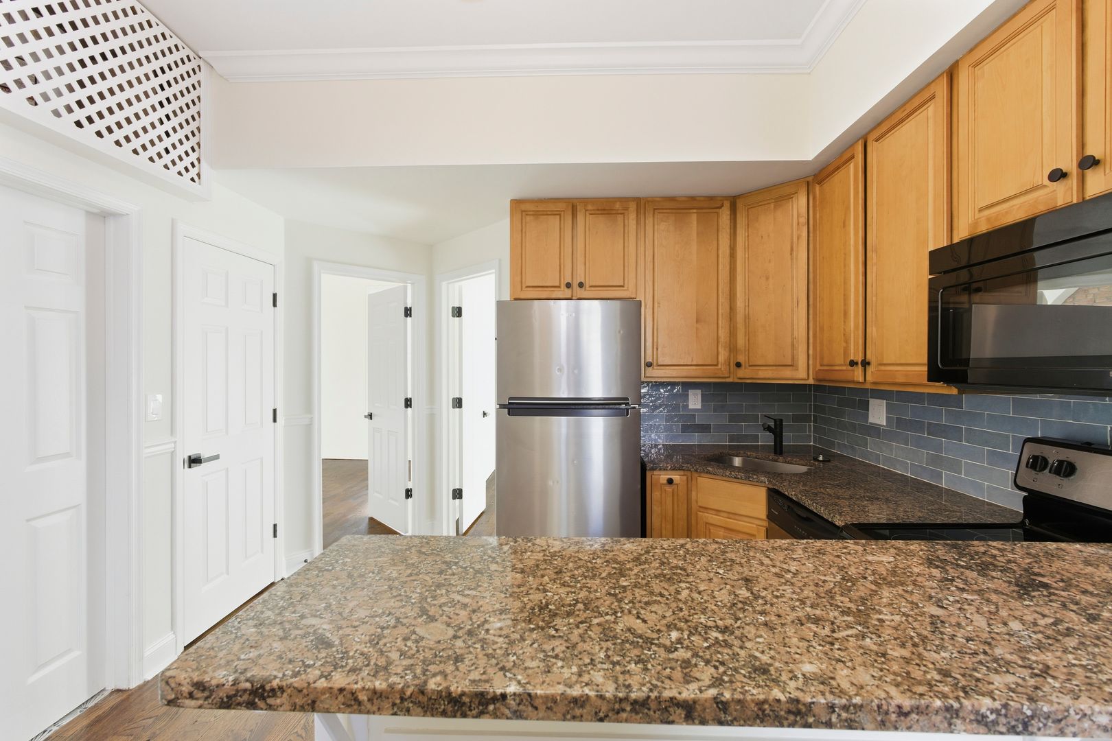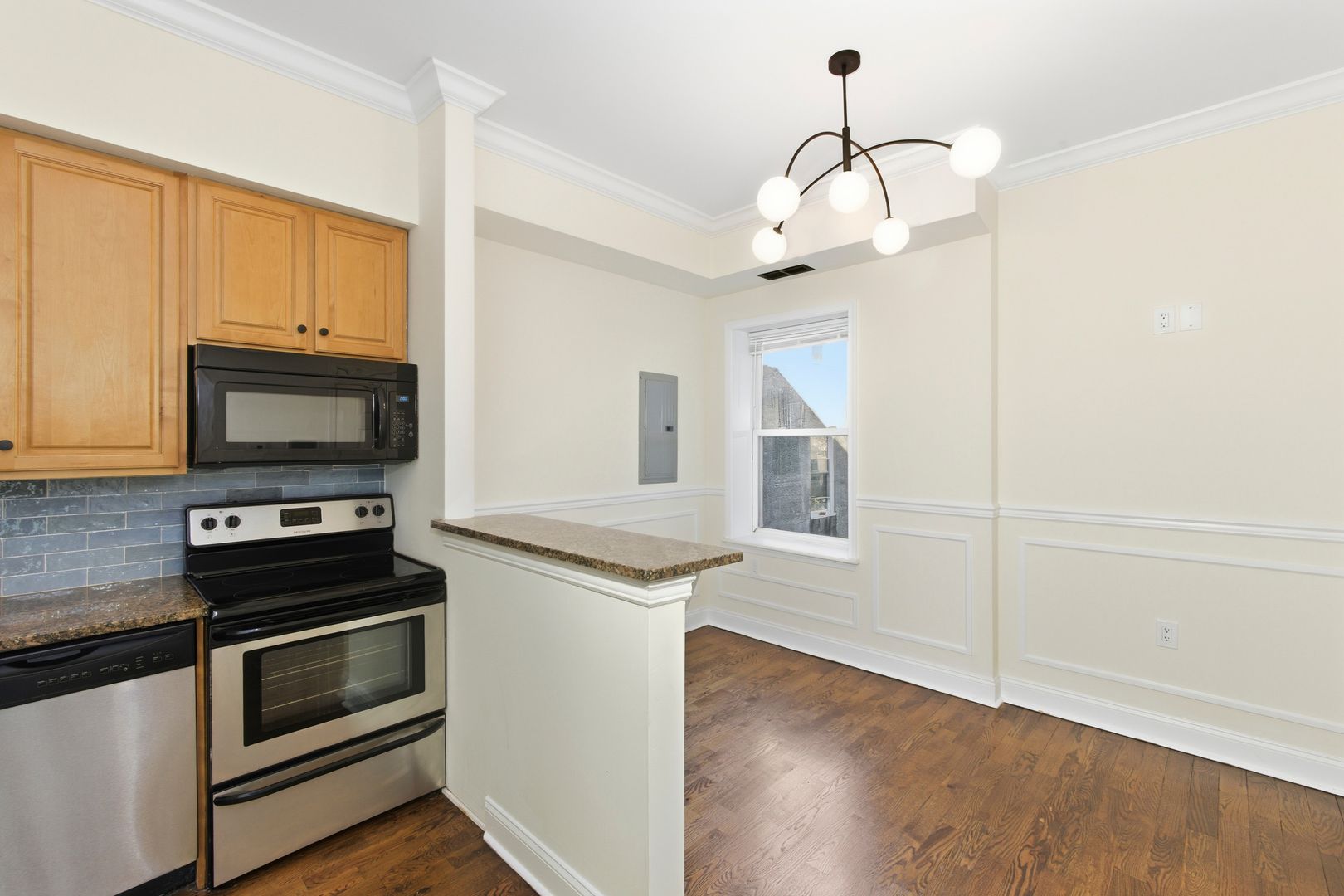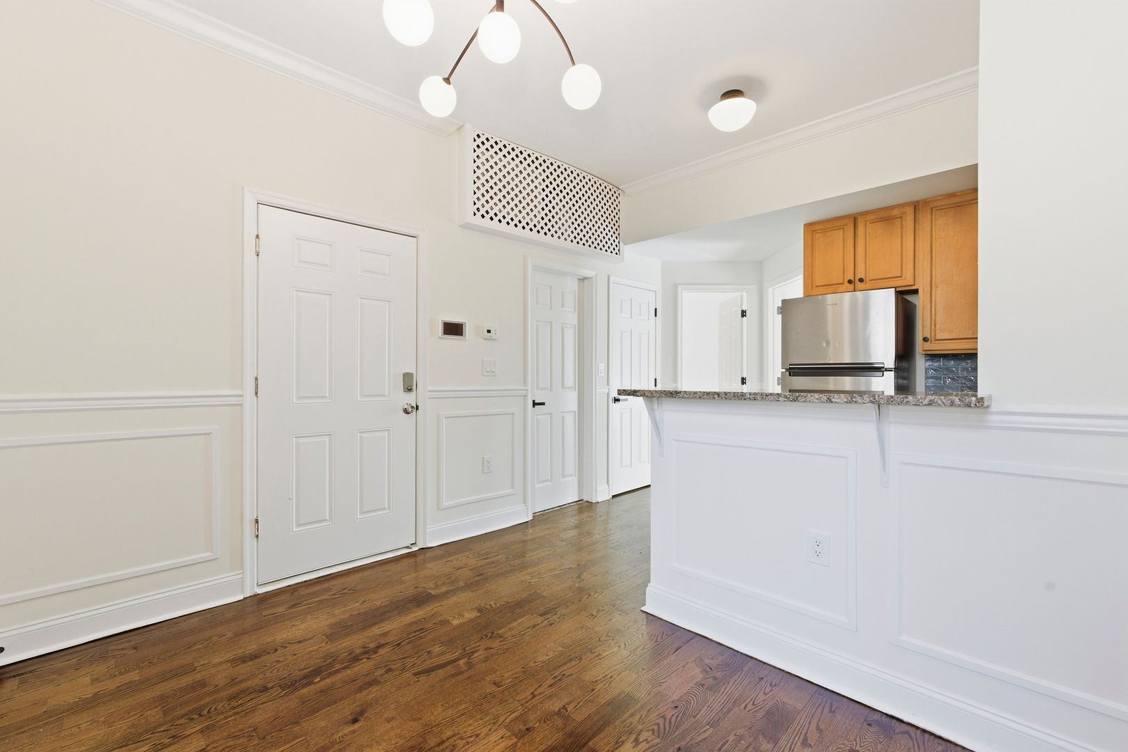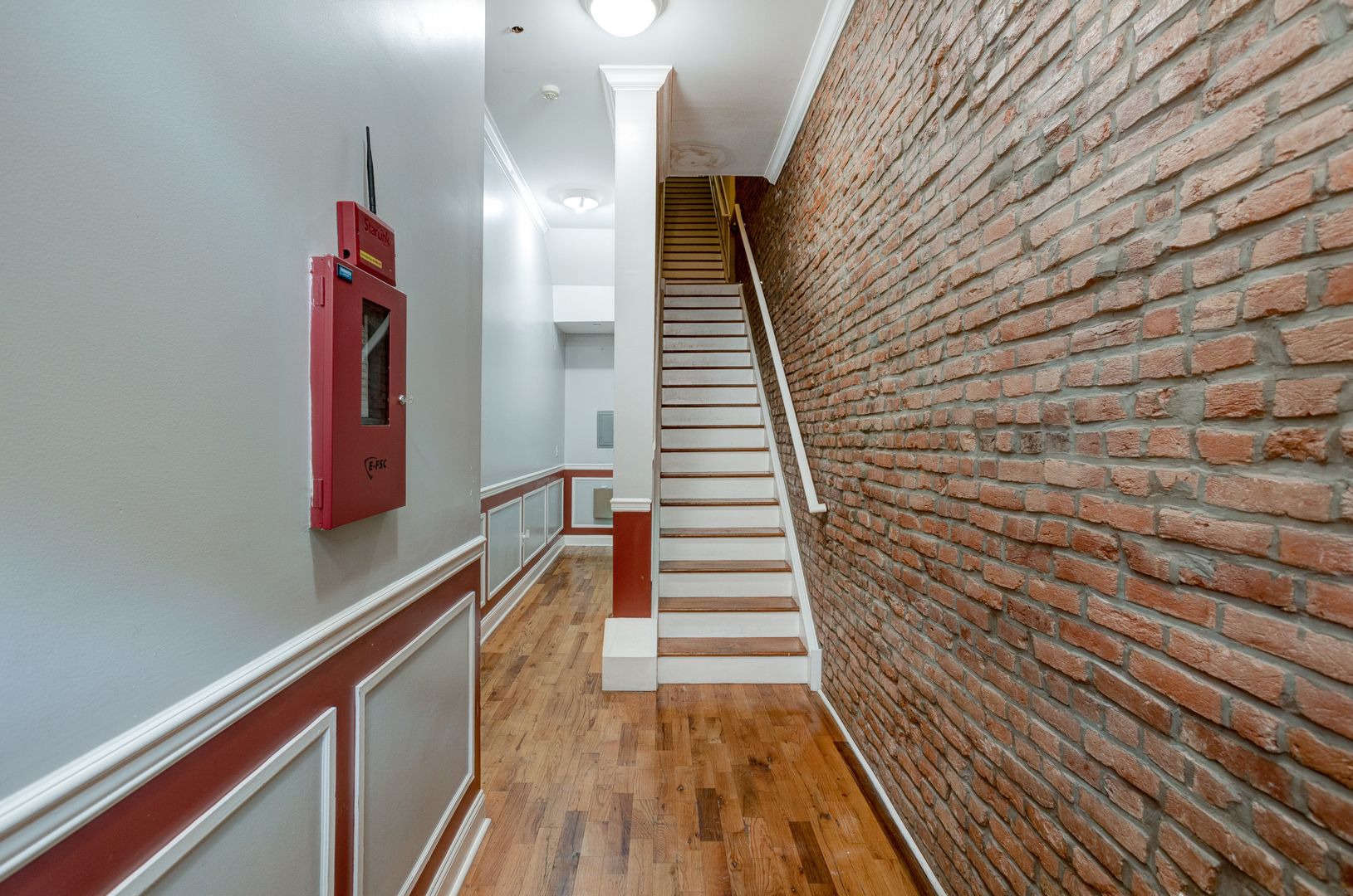 This charming 2-bedroom, 1-bath apartment features beautiful exposed brick and elegant crown molding throughout.
